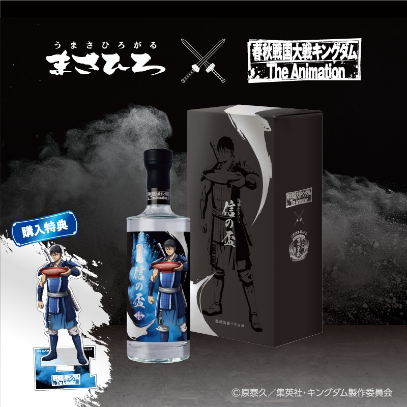 十年熟成した泡盛古酒とアニメ『キングダム』がコラボした、限定デザインボトル。