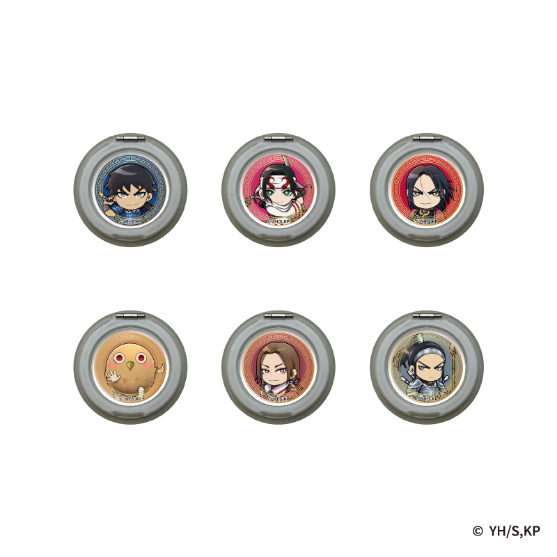 デザインラインナップは信、羌瘣、嬴政、河了貂、蒙恬、王賁のミニキャラが顔をのぞかせる計6種類で展開いたします。