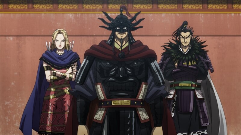 李牧率いる趙軍との総力戦に向け、王都・咸陽に大軍が集められた。軍総司令・昌平君は、今回の戦いが、桓騎(かんき)、楊端和(ようたんわ)、王翦(おうせん)による連合軍戦となることを告げ、全軍の“総大将”が発表される。
