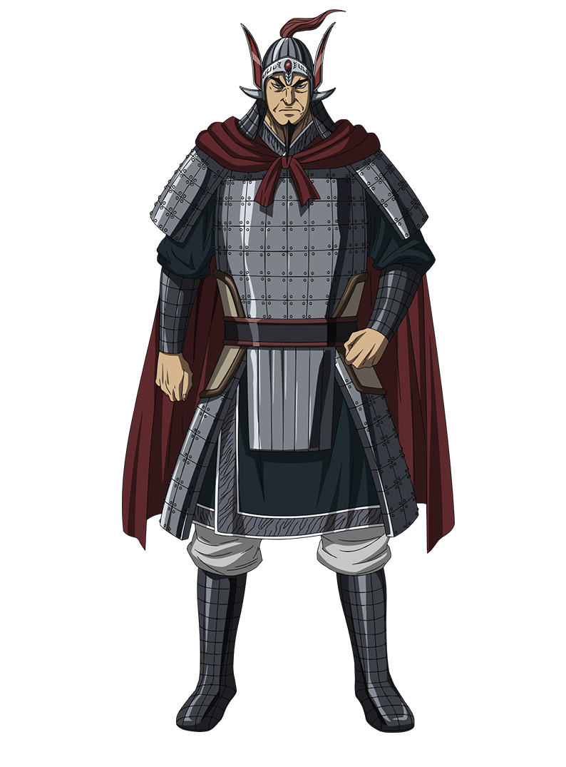 秦国しんこくの将軍。大将軍・王翦おうせんから最大の信頼を得る王翦軍第一将。小細工を好まず正面から堂々とぶつかり合う戦い方を得意とし、一旦動き出したら止まることなく敵陣の中へと突き進む。戦場では勝負に徹し、倒れた味方さえも躊躇なく踏み越えてゆく非情さも持つ。 “武”が際立つ猛将である一方で、理路整然としており、冷静に戦局を見つめて兵を動かす目もある武一辺倒ではない武将。