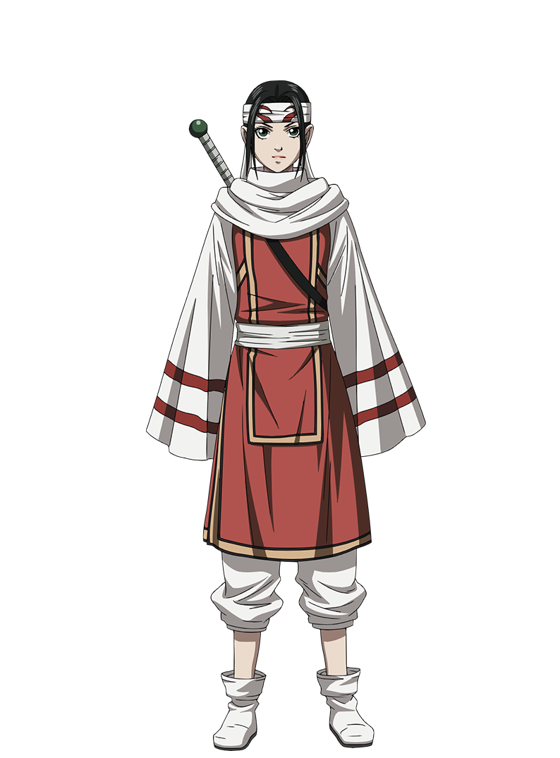 秦軍しんぐん所属“飛信隊ひしんたい”の副長のひとり。軍師としての役割も果たしている。隊長・信しんとはかつて蛇甘だかん平原の戦いで同じ“伍ご”の仲間として戦い、その人柄に惹かれ行動をともにするようになる。隊長である信とは別に“将”として一部隊を与えられている。信同様に“大将軍”となることを目指しているが、あくまで飛信隊の一員として戦うことを決めている。