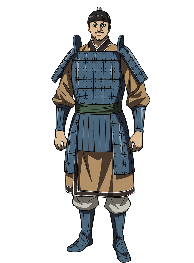 秦軍しんぐん所属“飛信隊ひしんたい”の副長のひとり。派手な活躍はしないものの、責任感が強く実直な人柄から、隊長・信しんやほかの隊員たちからの信頼も厚い。隊長・信との付き合いは長く、まだ下僕の少年だった信と王宮をつなぐ連絡役をしていた。今は亡き大将軍・王騎おうきが、“天下の大将軍”になることを夢見る信に対し、修業として出した課題に一緒に取り組み、苦楽を共にしたこともある。 信の初陣には同行しなかったが、飛信隊が “百人隊”となった頃から副長を務めている。