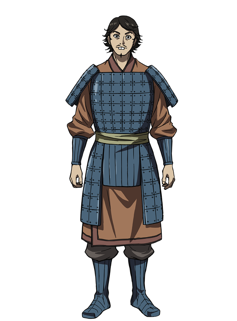 秦軍しんぐん所属“飛信隊ひしんたい”で什長を務める。飛信隊結成時からの一員で最古参。隊長・信しんとは同郷の幼馴染でともに初陣を果たした同期でもある。「“天下の大将軍”になる!」という夢を持つ信を支え、その夢をかなえる力になりたいと考えている。お調子者でおっちょこちょいなところはあるが、意外と根性があり、ずる賢さとは無縁な隊のムードメーカー。初陣となった蛇甘だかん平原の戦いではのちの飛信隊副長・羌瘣きょうかいや、弟の尾到びとうとともに信と同じ“伍ご”の仲間として戦った。故郷に東美とうびという恋人がいる。