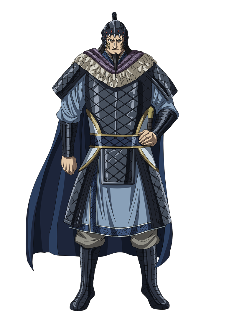 藺相如りんしょうじょの側近“藺家十傑りんけじゅっけつ”の“武”の象徴で、将たちを束ねていた実力者。 直下兵団“雷雲らいうん”は現存する藺相如の軍勢とも言われる。優れた戦術を使うが、実は直感的に戦況を見極め戦う“本能型の将ほんのうがたのしょう”。亡くなった主・藺相如を敬愛し、遺言に従ってもうひとりの藺家十傑・趙峩龍ちょうがりゅうとともに、殉死を選ばずに生き延びる。以来、第一線から退くも、趙国第二の都市・ 鄴 ぎょうを巡る戦いで指揮を執る李牧りぼくの要請により、十数年ぶりに戦場に復帰。秦軍しんぐんの若き将・信しんたちに、かつて死闘を繰り広げた