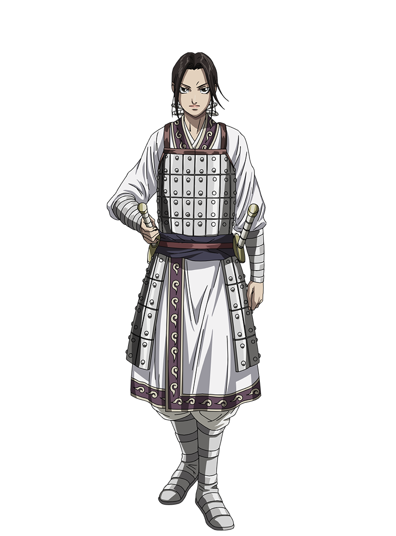 趙国ちょうこく宰相・李牧りぼくの側近。性格は男勝り。騎馬術や剣術を得意とし、李牧の護衛も務める。李牧を心から尊敬し、全幅の信頼を寄せている。かつての秦国しんこくとの戦の折に、軍師を目指して修業中だった河了貂かりょうてんと互いに素性を知らぬまま出会い、親しくなる。敵味方として分かれることになった現在でも河了貂のことを気にかけており、その身を案じてか、たびたび仲間に引き入れようと誘う。