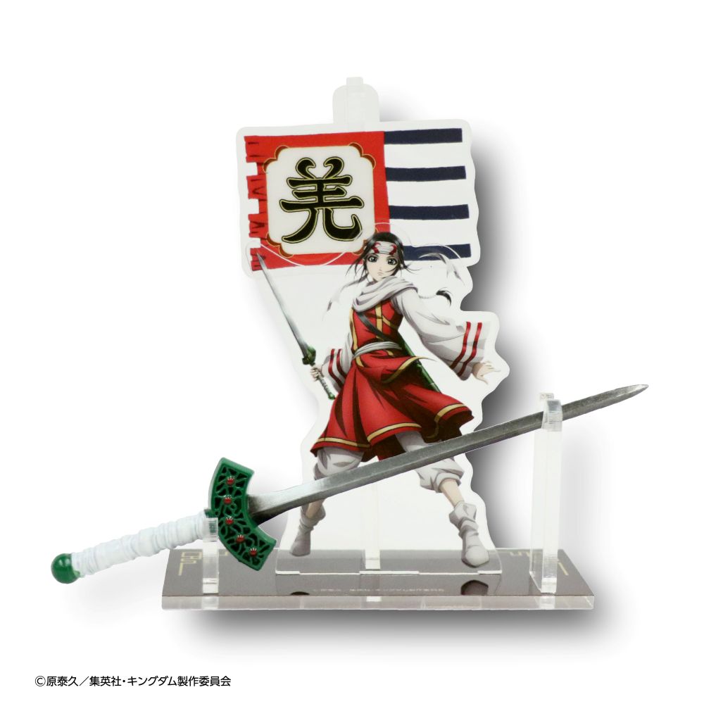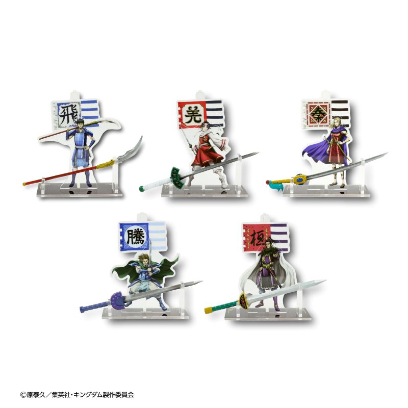 信、羌瘣、桓騎、楊端和、騰の武器をモチーフにしたメタル武器と、アクリルスタンドがセットになって登場!