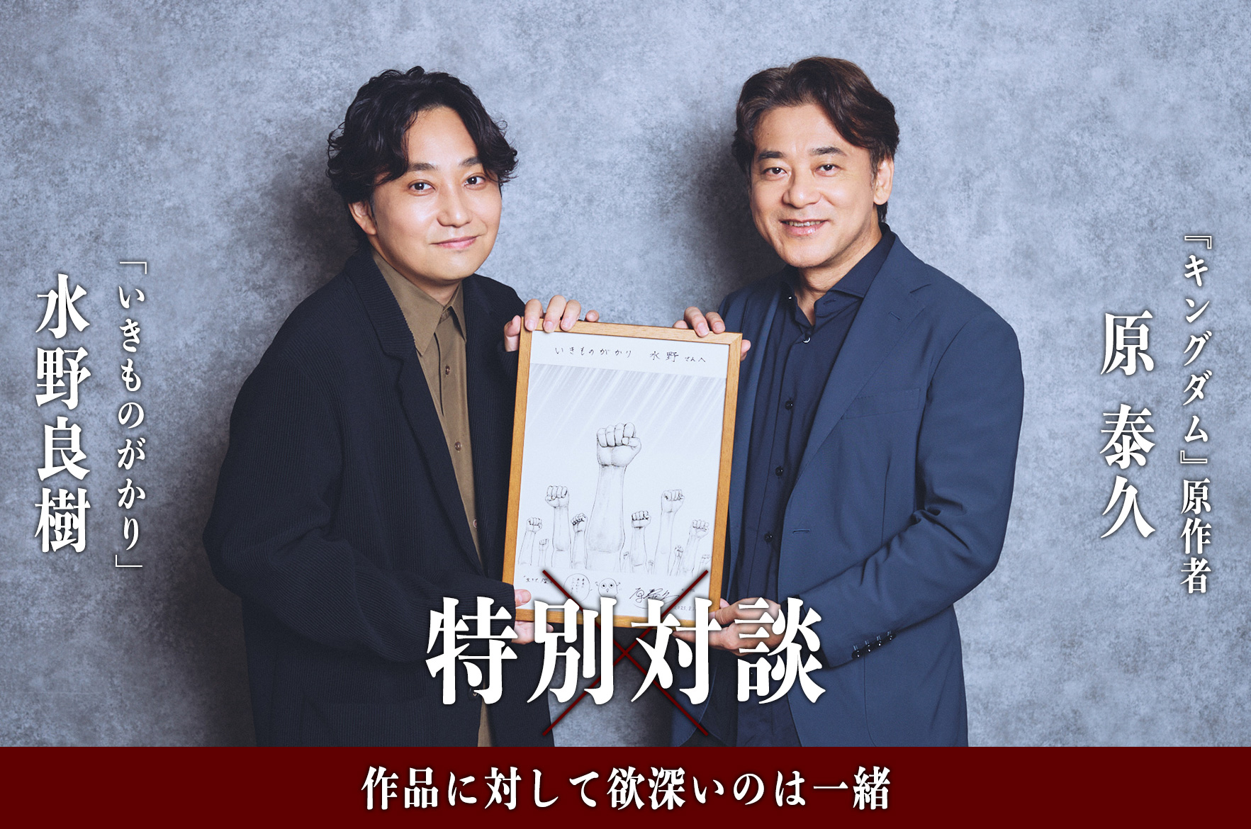 水野:『キングダム』の連載がスタートしたのが2006年1月、いきものがかりがデビューしたのが同年3月とちょうど同時期なんです。僕は『キングダム』の連載をヤングジャンプで追いかけていて、その流れで原先生をフォローさせていただきました。ライブ後の初対面ののち、2人で初めてご飯に行った際のことをよく憶えています。当時、『キングダム』では初期のトピックスである王騎が命を落とす回はもう終わっていて人気絶頂でしたが、原先生に「どうやったら売れますかね」と聞かれて。いちファンとして耳を疑いました。どこまでこの人は売れたいんだ?って(笑)。